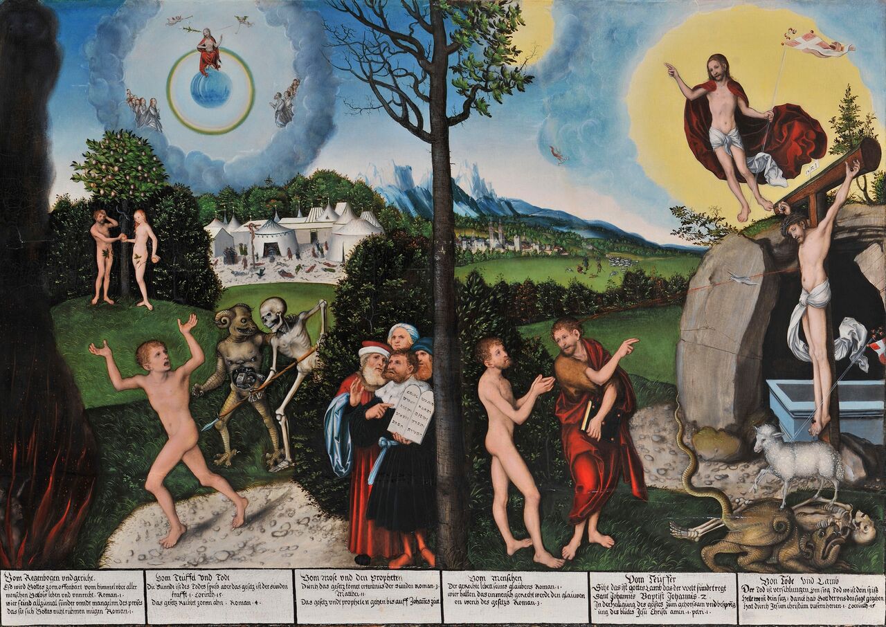 | "Law and Grace (1529), one of the most influential allegories of the Reformation, which underscores Luther’s belief in faith as the path to salvation. |