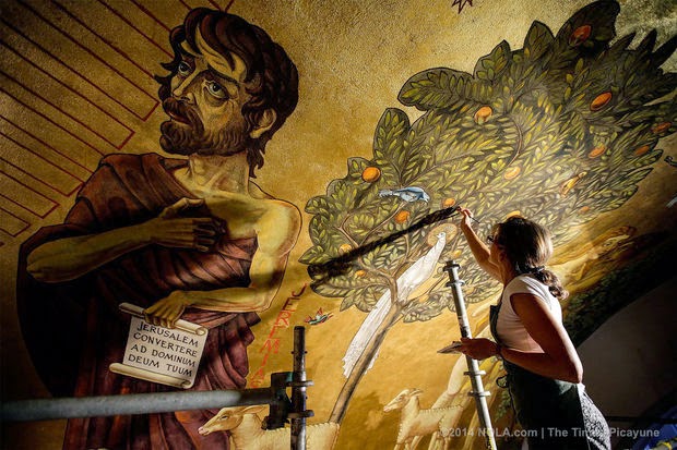LOUISIANA---Perched on a massive scaffold 75-feet above the altar of the
