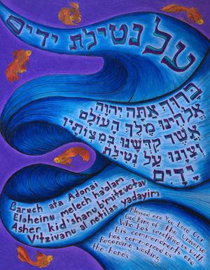 | Foster’s drawing of the "Al Netilas Yadayim (hand washing prayer)" was commissioned by a family in Scottsdale. Image courtesy of Brooke Foster |