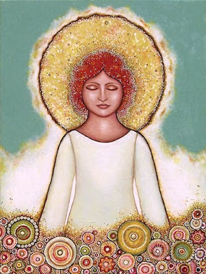 | Robin Rice of Enfield created this angel painting. It is part of the "Angels in the Casa" art exhibit at ArtSpace. |
