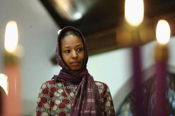 | Larycia Hawkins, an associate professor of political science at Wheaton College, wore a hijab at a church service in Chicago. Credit Stacey Wescott/Chicago Tribune, via Associated Press |