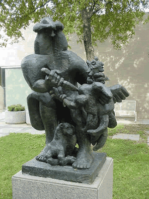 LOUISIANA - Jewish sculptor Jacques Lipchitz is considered by many to be the modern successor to Auguste Rodin because of his handling of symbolic themes in an expressive manner and in his preference for modeling his materials over carving. He created the sculpture "Sacrifice III" (above) between 1949-57 reflecting his interest in mythological and biblical subjects. Today it rests in a park in New Orleans. Sacrifice III depicts the Biblical story of Abraham and the sacrifice of Isaac. Lipchitz uses allegory to portray Isaac as the rooster in Abraham’s hands. The ram that was sent to replace Isaac is shown between Abraham’s legs. He worked on various versions of Sacrifice II between 1949 and 1957. These are years that the artist spent in the United States, having taken refuge here during World War II. It reflects his personal experience of persecution and displacement, as well as the modern Jewish practice of sacrifice (See Kapporet). In 1941 with the Nazi invasion, Lipchitz fled to New York, where he lived and worked until his death in 1973.